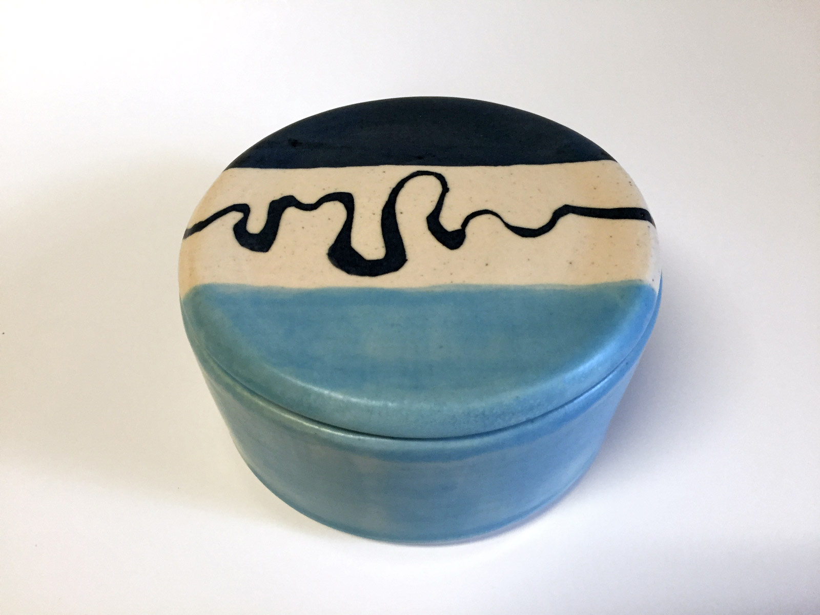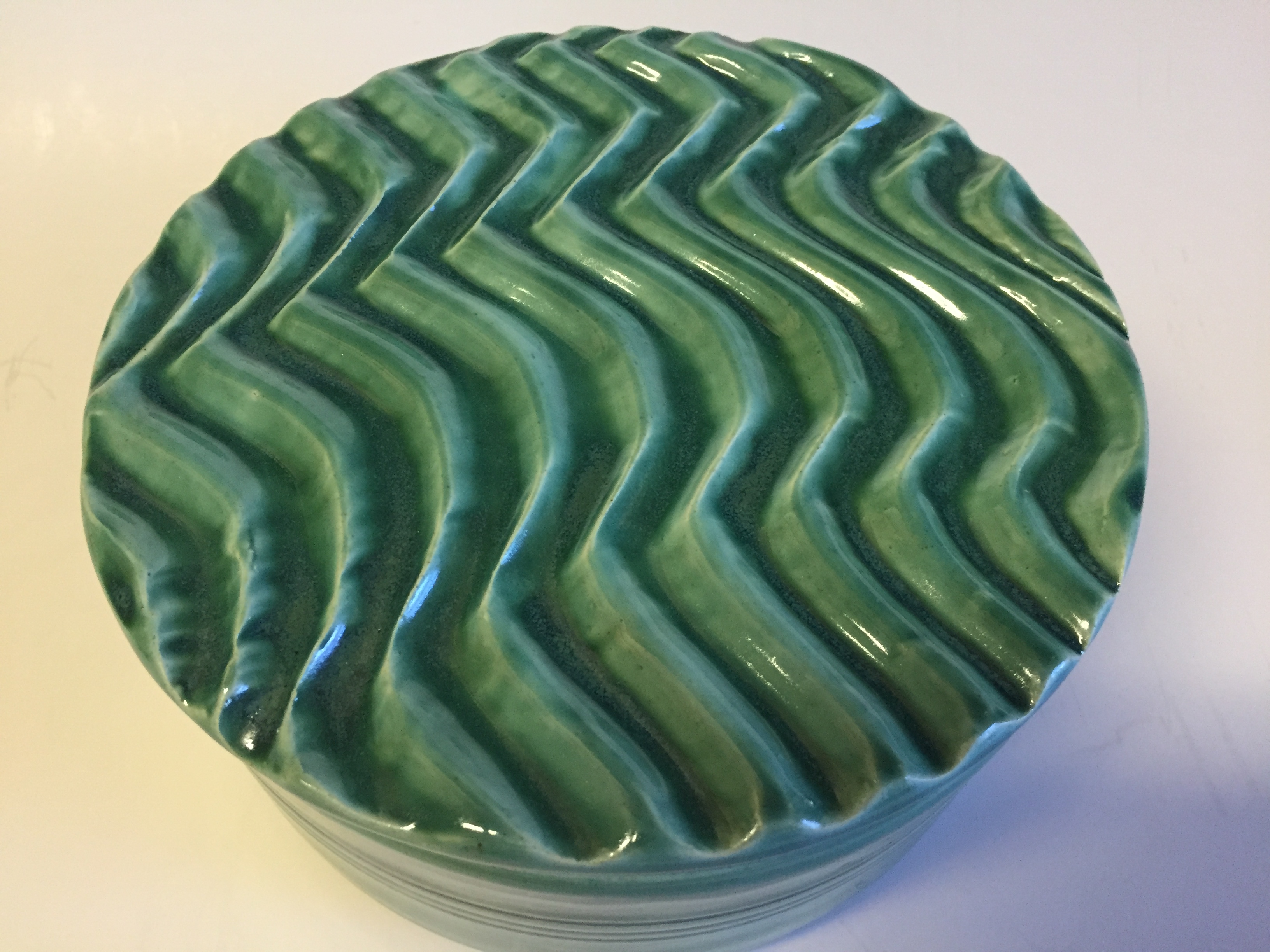 Her 6-inch wave-top boxes evoke the patterns left by waves on the sand.