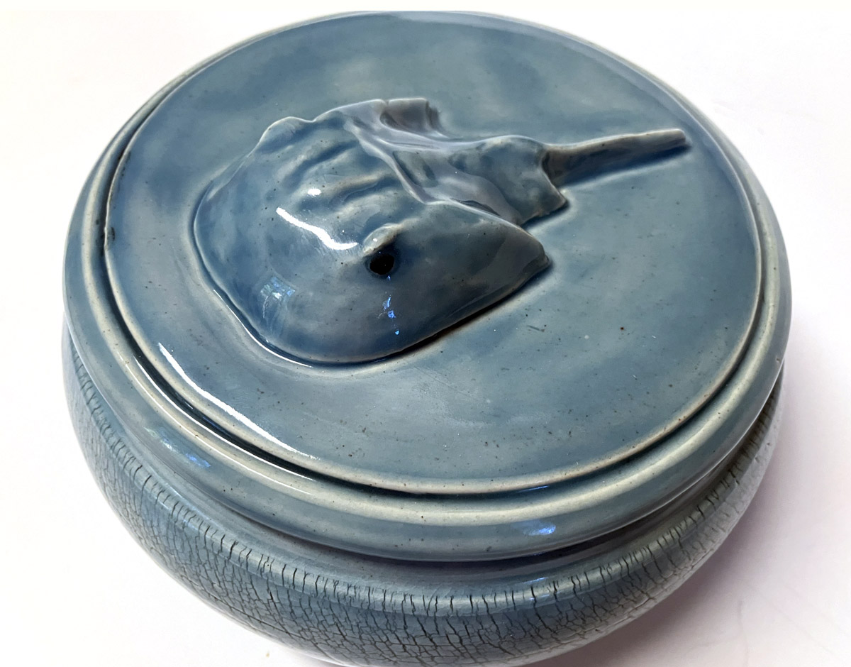 Janet Pane-Joyce's goal as a potter is to create pieces that surprise and amuse. Based on Virginia's Eastern Shore, she incorporates local natural elements such as horseshoe crabs and gum tree leaves into her wheel-thrown ceramics.