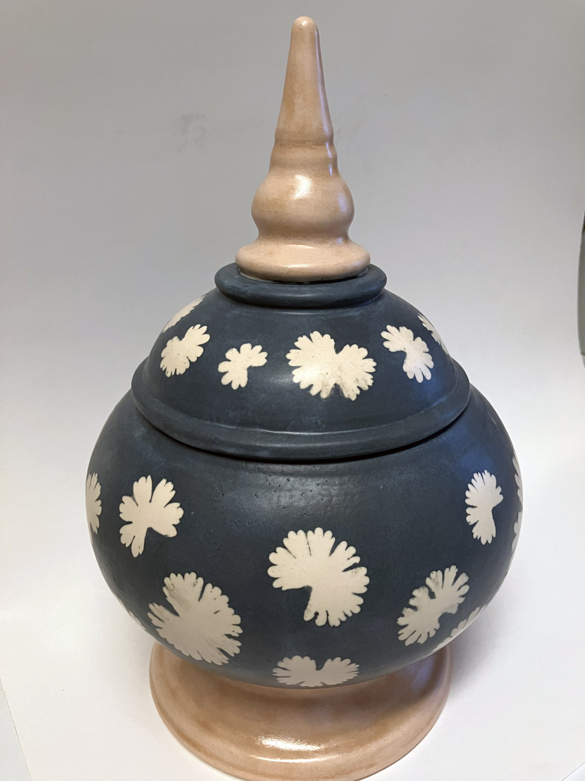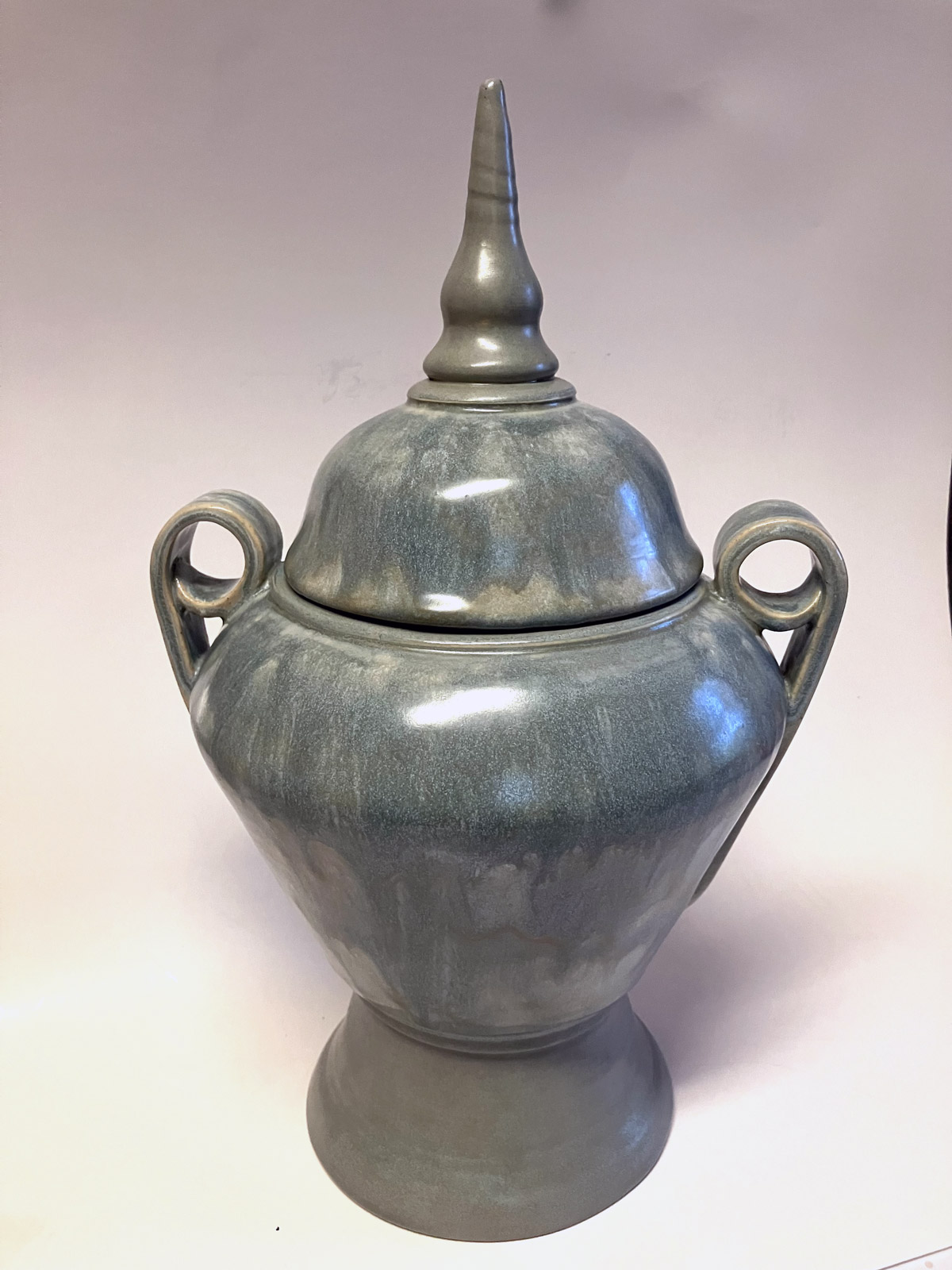 … to tall 15" decorative vases, 14’’ round wall pieces, and large lidded jars.