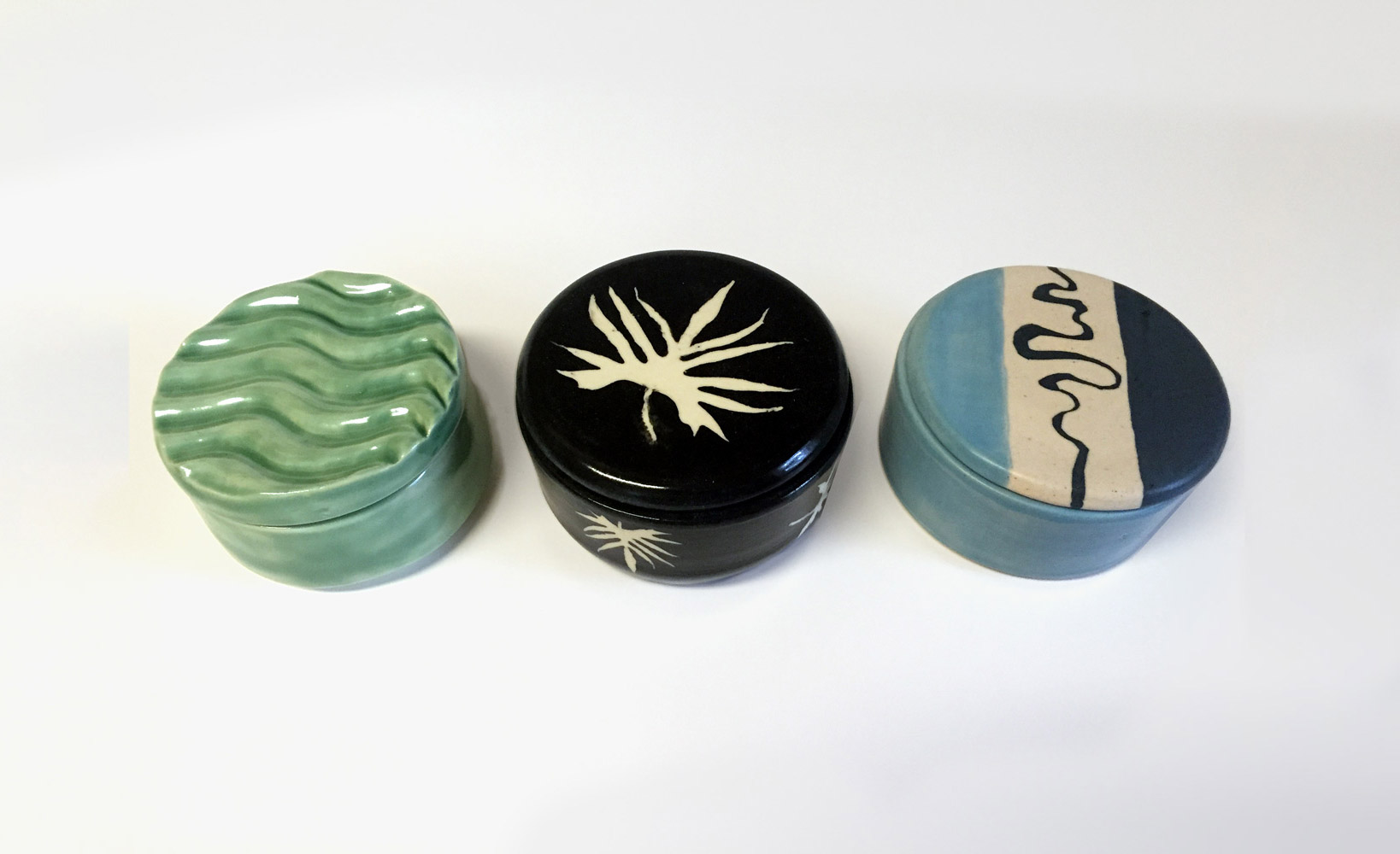 Janet’s pieces range in size from tiny 1” pots and 3” boxes...